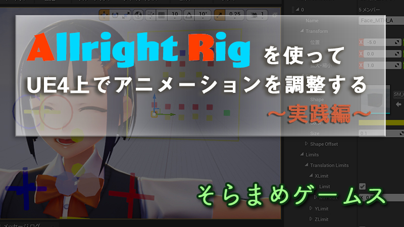 - 本記事の内容は私たちそらまめゲームスでの制作事例の紹介ですので、AllrightRigの全ての機能を網羅しているわけではありません。もっと良いノウハウがあるよという方は是非ご教示ください!